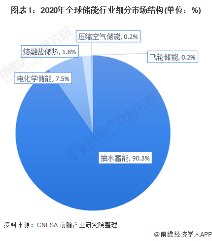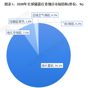 根据中国能源研究会储能专委会/中关村储能产业技术联盟(CNESA)全球储能项目库的不完全统计,截至2020年底,全球已投运储能项目中,抽水蓄能占比达90.3%;电化学储能的累计装机规模紧随其后,占比为7.5%;熔盐热储能、压缩空气储能、飞轮储能的规模占比较小,分别为1.8%、0.2%、0.2%。
