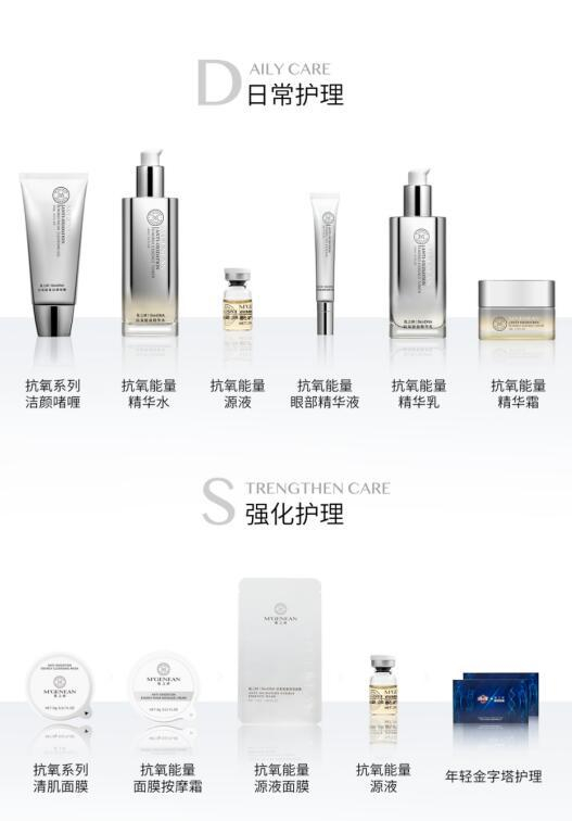 在产品组合上,蔓之研SkinDNA抗氧能量系列包括洁颜啫喱、精华水、眼部精华液、精华乳和精华霜五种产品,主打抵御污染、刺激胶原蛋白合成、改善肤色和抗衰老几大功效。