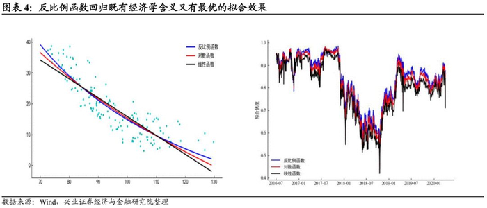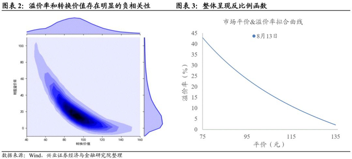 在转股溢价率上进行适当修正,是比较可行的思路。转股溢价率和平价从数量关系看是负相关,从指标计算过程看是反比例函数关系。我们对比了对数函数、线性函数和反比例函数的拟合效果,反比例函数也最优。