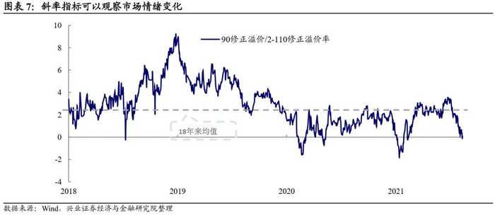 2)估值斜率指标的信号价值。转债市场给予低价转债、高价转债的估值水平相对变化,背后显示的是转债市场对于市场未来风格变化的预期。可以用高低平价水平的溢价率差构造估值斜率指标。当出现极值拐点的时候,往往对于股市和转债有一定的领先作用(做空指标包括21年1月、20年2月底,做多指标包括18年12月底、19年4月底)。