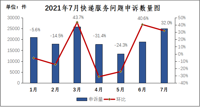 8月27日,国家邮政局发布关于2021年7月邮政业用户申诉情况的通告,数据显示,2021年7月,国家邮政局和各省(区、市)邮政管理局通过“12305”邮政业用户申诉电话和申诉网站共处理申诉25569件,环比增长31.1%,同比增长46.4%。