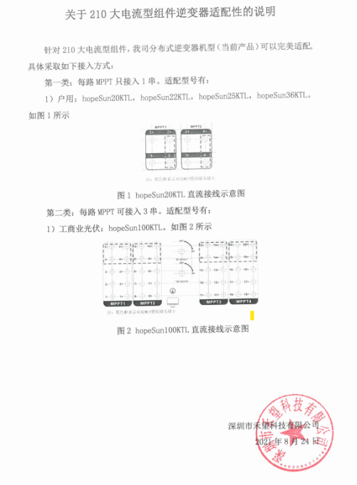 ▲8月24日,禾望电气发布声明,宣布目前已在供的20kW~100kW分布式逆变器可以匹配210超高功率组件。