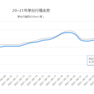 据茅台行情网,8月19日,21年飞天茅台(散装)的价格约为3170元/瓶;从8月20日起,其价格连续多天下跌,到8月25日,跌至2750元/瓶。