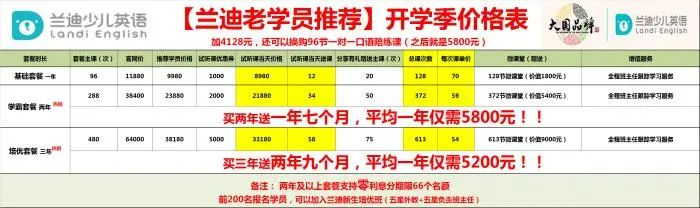 (兰迪少儿英语价格表)