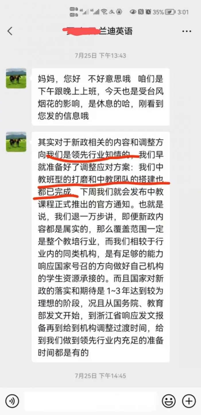 李瑞赶紧联系她的客服顾问,结果被告知:“对于新政的内容和调整方向我们是领先行业知情的,早就准备好了调整应对方案”,即推出中教课。