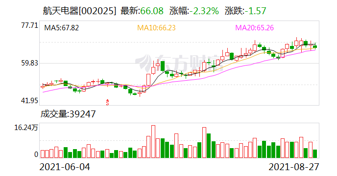 中航证券8月28日发布研报,给予航天电器买入评级,目标价位73元。截至报告日,公司最新收盘价为66.08元,较目标价有10.47%的上行空间。中航证券预测,航天电器2021年归母净利润5.9亿元,同比增长36%。