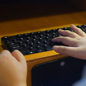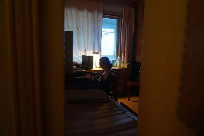 王磊用能动的一根手指敲击键盘,回复病友的问题(8月23日摄)