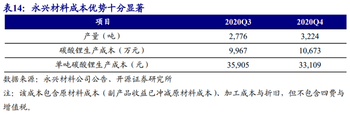 产能快速释放,产销量有望显著提升。在锂盐生产方面,公司现有碳酸锂产能2.5万吨/年、氢氧化锂产能1.5万吨/年,同时未来计划新增氢氧化锂产能3万吨/年,其中首期项目(产能2万吨/年)已于2020年末开工建设。由于现有的4万吨锂盐产能中有2万吨为2020Q4投产(碳酸锂与氢氧化锂各有1万),因此2020年公司锂盐产品销量合计仅有20153吨。随着后续产能的快速释放,我们预计2021-2023年公司锂盐产品销量将分别达到3.0万吨、3.8万吨、5.0万吨。