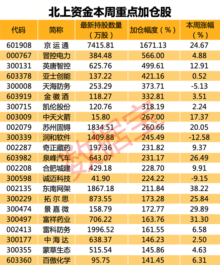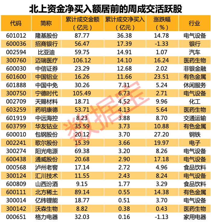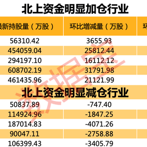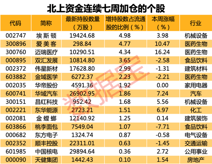 上周北上资金重点加仓了这些个股。