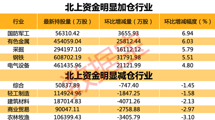 周期、军工板块获北上资金重点加仓