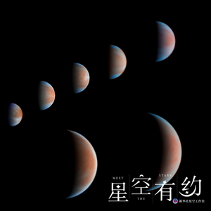 北京市天文爱好者宗海阳2020年1月至4月拍摄的金星云带及相位变化(多张叠加)。(本人供图)