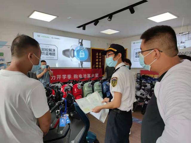 30日下午1点,北京市朝阳区市场监督管理局到涉事的哈啰、新日、爱玛、绿源四家电动车车行进行检查。