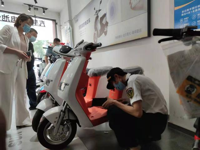 在哈啰电动车十里河店,朝阳区市场监督管理局产品质量科执法人员现场查处6辆改装电动车,经现场鉴定,该6辆车外形与产品合格证参数不符,为改装车辆。