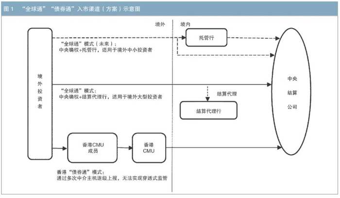 二是香港“债券通”。香港“债券通”模式是对“全球通”模式的补充,采用该模式的投资者以境外中小商业类机构为主,通过香港金融管理局旗下的债务工具中央结算系统(CMU)间接进入,在境外通过多层中介逐级上报。“债券通”采取不透明的多级托管体系,投资者开立混同账户,间接持有债券,法律结构复杂,结算环节冗长,难以实现穿透式监管,并不可避免地会带来多个托管层级相互依赖的操作风险、监管困难和结算时滞。另外,由于CMU受香港地区法律体系监管,境内监管部门难以对其实现充分有效的监管。