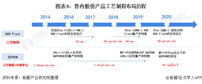 工艺制程方面,普冉股份自2016年成立以来,采用55nm的电荷俘获工艺进行NOR Flash存储器芯片的设计,相较于行业主流的浮栅65nm工艺制程,具备更优的功耗和芯片尺寸。公司目前正在积极推进40nm的NOR Flash产品研发,新一代NOR Flash产品具备更高的芯片集成度、更低的功耗水平。