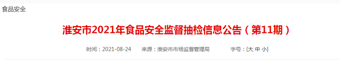 | 淮安市2021年市级食品安全抽检信息表 | |||||||||||