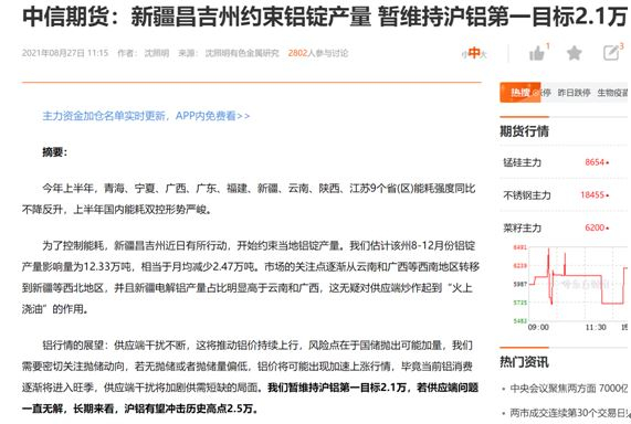 正当铝价创新高之际,中信期货的一篇报告引起记者关注,文中指出:“若供应端问题无法解决,沪铝或冲击历史高点2.5万!”不过,值得关注的是,虽然中信期货在报告中强烈看多铝价,但从持仓上来看,却是最大的空头。据数据显示,截至8月30日,沪铝2110合约中,中信期货席位多头持仓共24842手,位居多头排名第二位;空头持仓41467手,空头持仓排名第一。