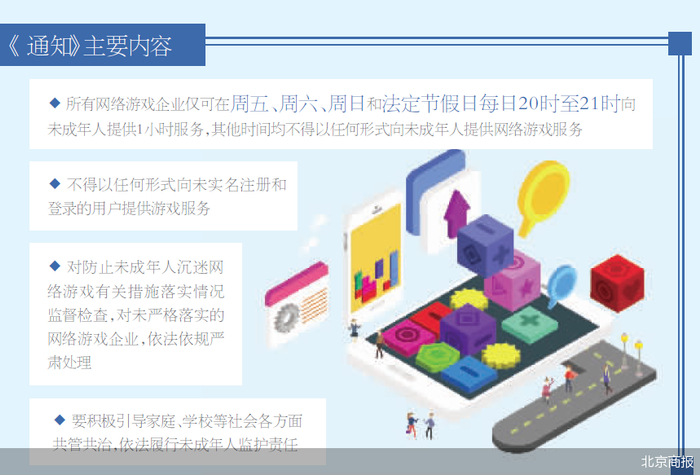 据《通知》显示,此次要求所有网络游戏企业仅可在周五、周六、周日和法定节假日每日的20时至21时向未成年人提供1小时服务,其他时间一律不得向未成年人提供网络游戏服务。