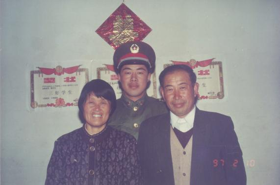 1997年春节,父亲当兵后第一次回家。父亲身穿军校学员服,能看得出他内心的激动,爷爷奶奶也由衷地高兴,为他取得的成绩感到骄傲。