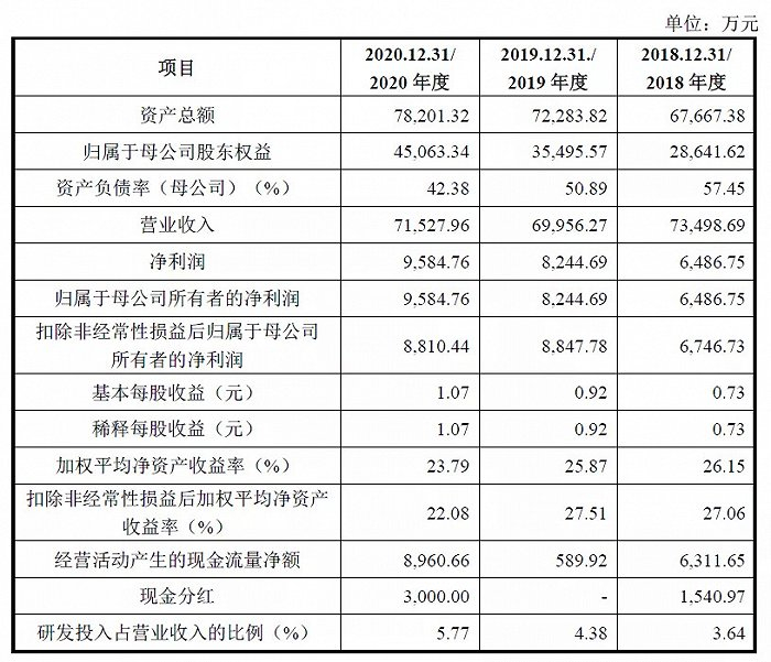 2018年,2019年,2020年青岛云路分别实现营业收入7.35亿元、7.00亿元、7.15亿元,实现归母净利润6486.75万元、8244.69万元、9584.76万元。