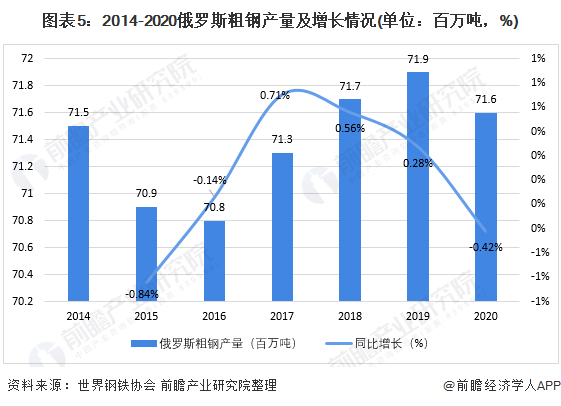 ——2020年俄罗斯钢铁产品产量小幅下滑
