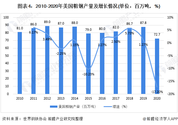 ——2020年美国钢铁产品产量大幅下滑至近十年最低