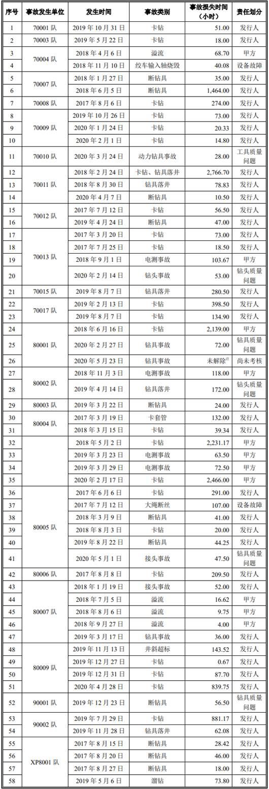 招股书显示,新疆派特罗尔2017年至2020年1-6月共发生18起设备事故、58起生产技术事故,设备事故、生产技术事故合计76起;同时,新疆派特罗尔还披露,公司钻井队和节能事业部在生产过程中共发生人员伤亡事故21起,造成21名员工受伤、另有1人因工受伤后抢救无效死亡。截至2020年6月30日,新疆派特罗尔合并口径的员工人数合计1726人,报告期内的人员伤亡数量占比1.27%。