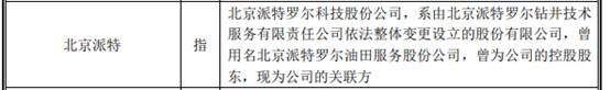 新疆派特罗尔招股书显示,北京派特罗尔科技股份公司系由北京派特罗尔钻井技术服务有限责任公司依法整体变更设立的股份有限公司,曾用名北京派特罗尔油田服务股份公司,曾为公司的控股股东,现为公司的关联方。