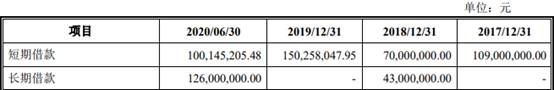 2017年至2020年1-6月,新疆派特罗尔短期借款分别为1.09亿元、7000.00万元、1.50亿元、1.00亿元;2018年、2020年1-6月长期借款分别为4300.00万元、1.26亿元。