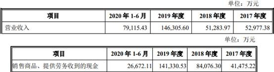 2017年至2020年1-6月,新疆派特罗尔实现营业收入分别为5.30亿元、5.13亿元、14.63亿元、7.91亿元,销售商品、提供劳务收到的现金分别为4.15亿元、8.41亿元、14.13亿元、2.67亿元。
