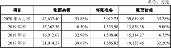 2020年上半年应收账款账面余额4.26亿元