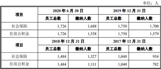 2017年至2020年1-6月,新疆派特罗尔员工总数分别为1040人、1484人、1750人、1726人。