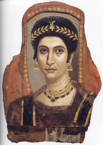 图二 阿丽娜的肖像画,约公元1世纪,高:40厘米,宽:32.5厘米,柏林埃及博物馆,馆藏号11411