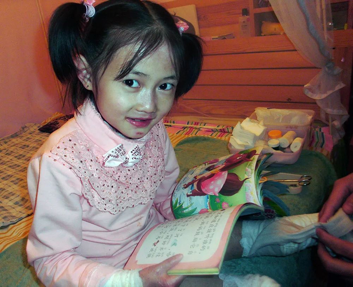 “唯一能帮到她的办法,国际上也只有护理,包括处理伤口、上敷料、包扎等。”周迎春说,女儿身上的皮肤缺损处,随时都可能长出新水泡,每次都要尽早把水泡戳破,包扎好,不让伤口裸露,直到伤口愈合。