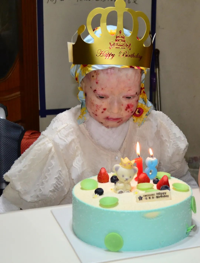 她患有先天性大疱性表皮松解症,这类患者常被社会称为“蝴蝶宝贝”。由于基因变异,他们皮肤中的结构蛋白被破坏,身体犹如蝴蝶翅翼一样脆弱,任何摩擦、撕扯,甚至亲人的拥抱,都有可能让他们受伤。