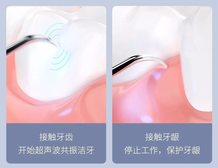 并且它在工作的过程中,洁牙仪接触牙齿、玻璃等硬物才会工作,当接触牙龈、牙肉等软组织时不会工作,所以大家可以安心使用。