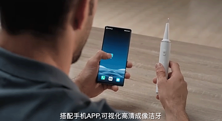 并且在使用的过程中,洁牙仪还内置了四轴定向陀螺仪,可以保持在机身转动镜头视角不变,做到精准洁牙。