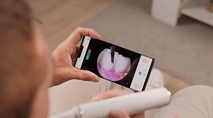 所以素诺超声波洁牙仪在前端配置了一个500W高清内窥镜和微距处理技术,通过手机连接后可以实现可视化洁牙。