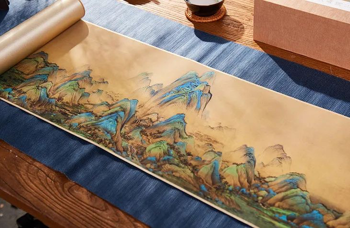 复刻千里江山图的颜料,更是由中央美术学院的冯海涛教授研究了四年,闭关两个月,才复制出十分之一。后得中国非遗国画颜料传承人仇庆年先生找到与画作一样的矿物质颜料,才算圆满成功。