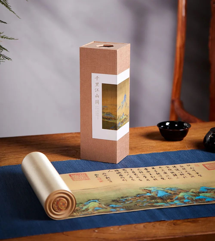 2020年故宫600周年,耗费千人千力的《千里江山图》首先限量上市,一经面世便引起了极大的轰动。
