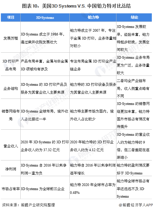 原标题:干货!2021年中美3D打印龙头企业对比——美国3D Systems VS 中国铂力特 来源:前瞻产业研究院