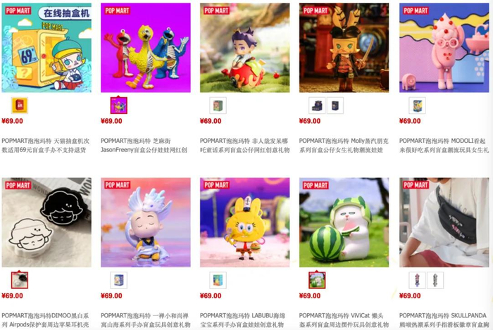 8月4日泡泡玛特旗舰店在售69元盲盒产品有10款(截图为部分)