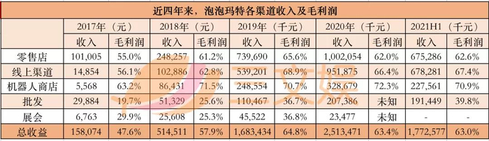 盲盒产品的毛利率大多超过50%,主营产品为盲盒的泡泡玛特2019年、2020年和2021年上半年的毛利率分别达到了64.8%、63.4%和63%。