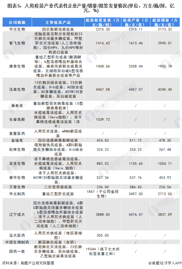 人用疫苗产业代表性企业产量/销量/批签发量情况
