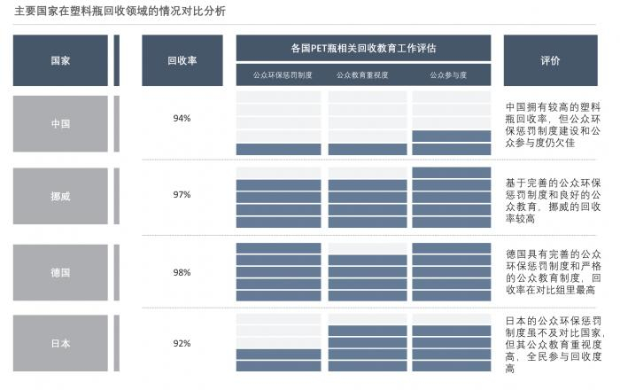 (各国回收情况对比,来源:《2021年碳中和背景下PET瓶可持续发展报告》)