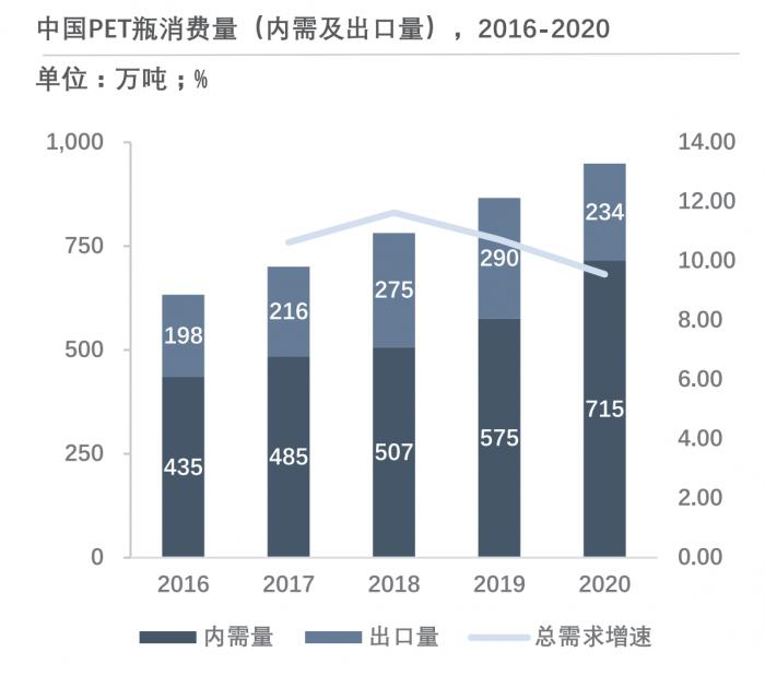 (2020年中国消费近1000万吨PET瓶,来源:《2021年碳中和背景下PET瓶可持续发展报告》)