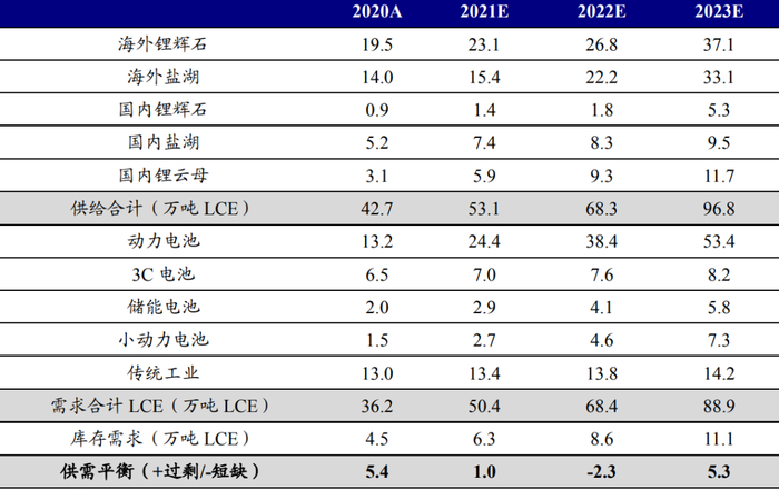预计2021-2022年全球锂供需继续保持紧平衡态势