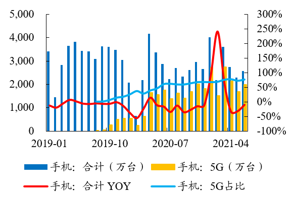 乘5G东风,全球手机行业景气度持续复苏。根据国家工信部数据,2021年6月国内手机出货量达到2566万台,其中5G手机出货量1979万台,市场渗透率高达77.12%。IDC预计,随着市场需求的持续复苏以及5G渗透率的持续提升,2021年全球手机出货量将同比增长5.5%,同时2020-2025年年均复合增速也将达到3.6%。