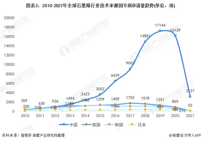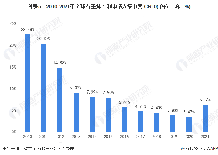 原标题:收藏!2021年全球石墨烯行业技术竞争格局(附区域申请分布、申请人排名、专利申请集中度等) 来源:前瞻产业研究院