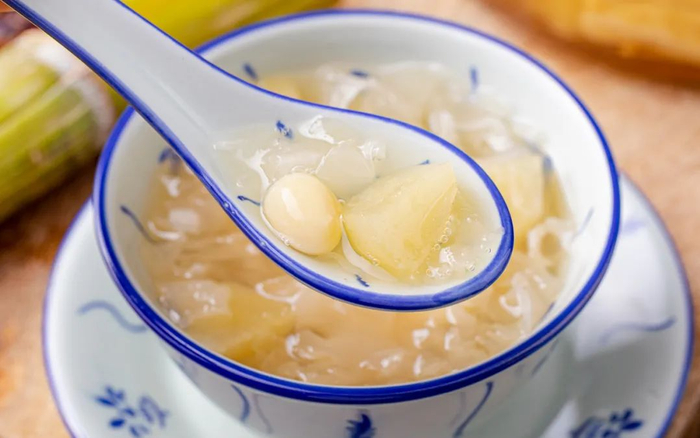 小吊梨汤是北京的传统特色热饮,雪花梨清肺,银耳滋润,喝上一碗清嗓润肺,建议大家将梨皮一起加入熬制,可以使汤汁更加浓稠清润。